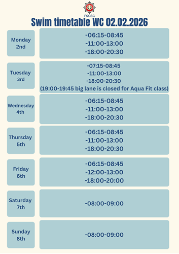 Here's our swim timetable